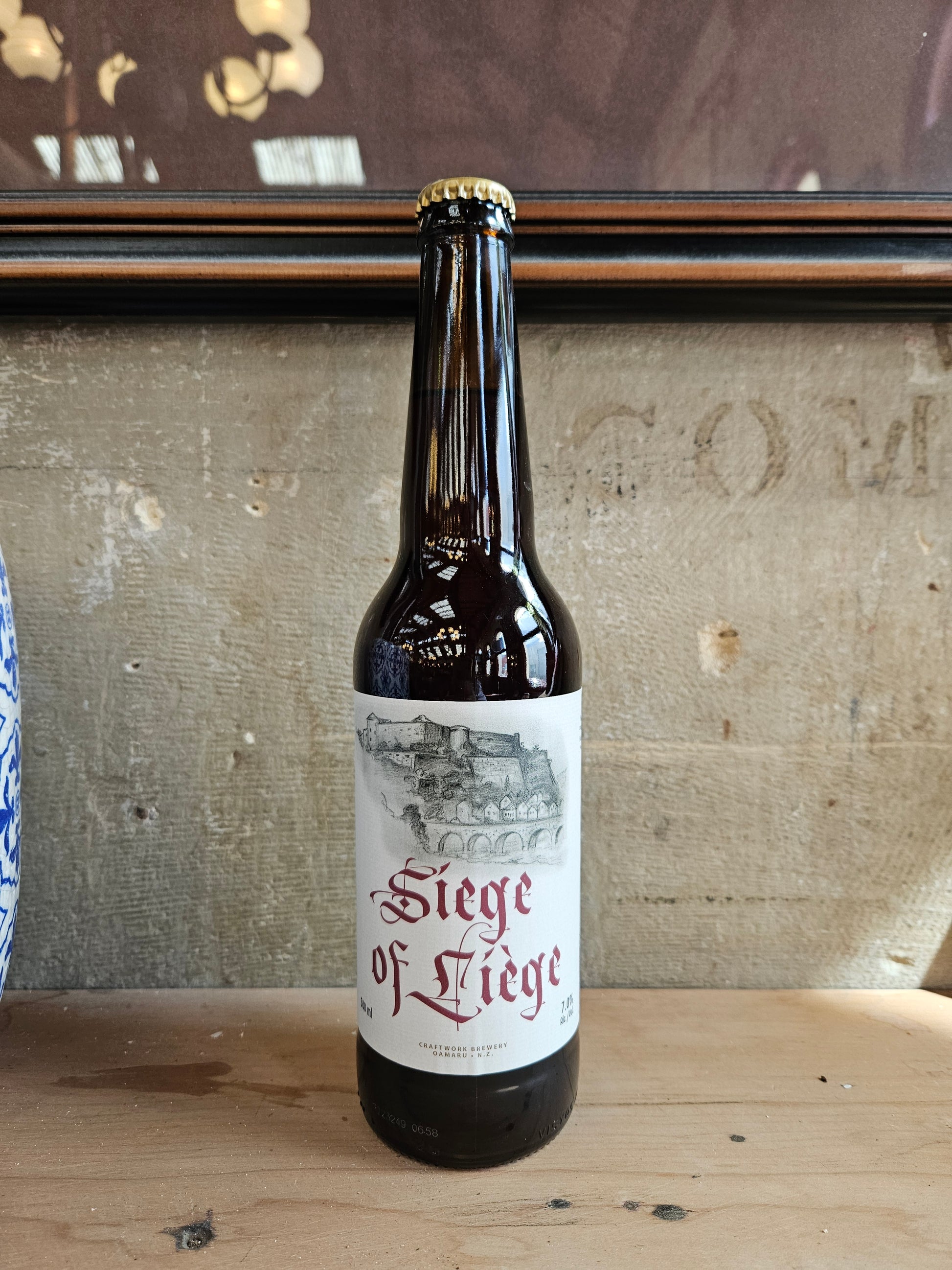 A Barrel-aged mixed fermentation saison, initially fermented with French saison yeast, pumped into two oak puncheons with Liège sirop (Flemish syrup made from pear and apple), and Brettanomyces, Pediococcus, and Lactobacillus, for 18 months. Rich and tangy with a slight sweetness, fennel, pear and big oak.